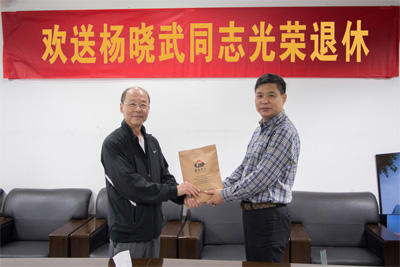 2015年11月6日,在我院召开的中层例会上,举行了杨晓武同志光荣退休的欢送会。公司领导及同仁都对其工作与共事的经历讲诉了感受与评价,充分肯定了他的业绩和对公司发展所做出的贡献。杨晓武,男,现年60岁,1955年9月生,瑞安人,1971年参加工作,在我院任职设备总师。从投入工作40余年里,他对本职工作兢兢业业,认真负责,赢得了公司同仁的信任和尊敬。欢送会在一片温馨、轻松、和谐的氛围中圆满结束。